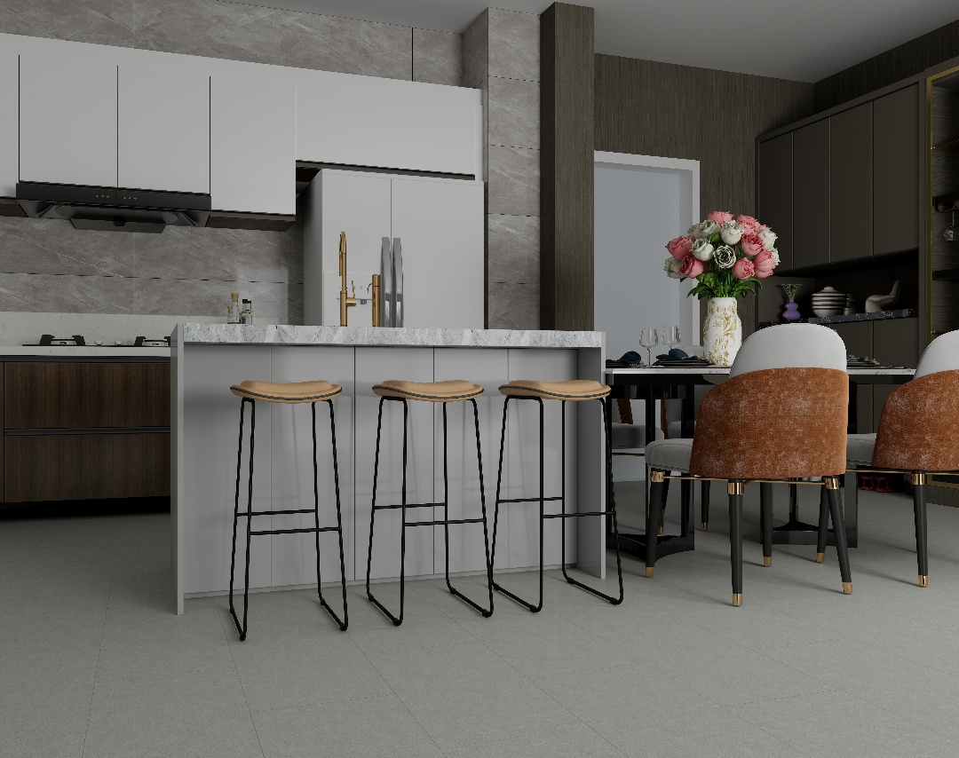 高級淺灰色與隱約亮色水泥石紋的完美結合,如微風吹過溪流,在朝暉之中泛起粼粼波光。在這雅致的時光里細品一杯香茗,回味一樁往事。