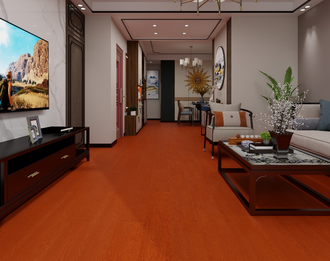 源自中國傳統色彩的經典紅棕色,以其大氣華麗的視覺感受,結合純天然的木材紋理和人字拼設計,不僅為家居空間增添了一抹東方古典的韻味,更在每一處細節中流露出深厚的文化底蘊。這種色彩和設計的選擇,不僅彰顯了主人對傳統文化的尊重和傳承,也讓整個空間充滿了獨特的藝術氣息和歷史感。