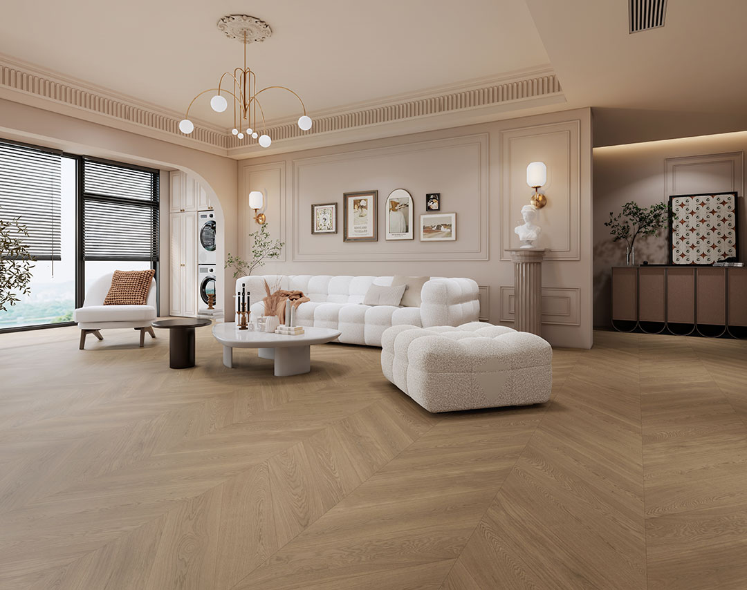 甜甜的奶油色,精致的魚骨拼,不同的光線下得到的是不同的溫柔投射。干凈利落的同時又十分柔和,像四季中最宜人的春天 ,讓人不知不覺便在居家空間中獲得精神上更好的放松。