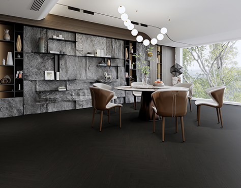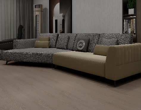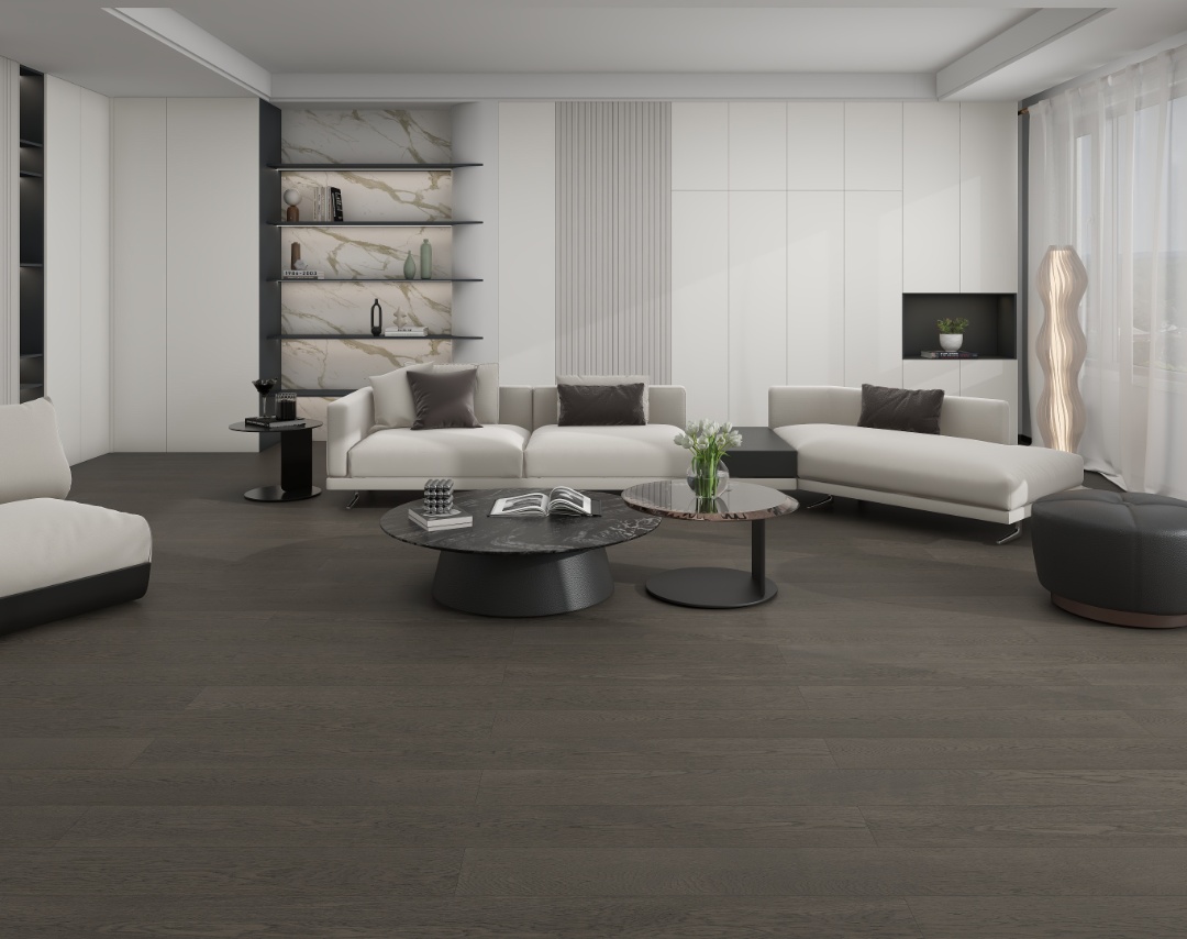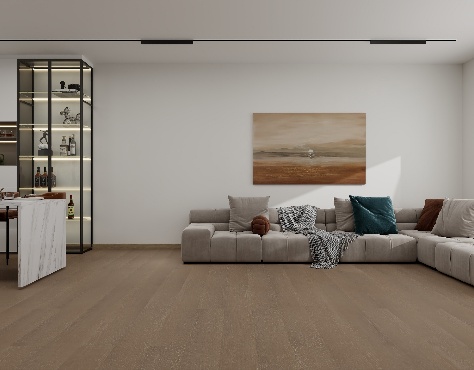 摩卡灰木地板本身具有沉穩低調的特質,搭配褐色紋理給人一種成熟穩重的感覺,二者搭配在一起,能讓整個空間顯得更加大氣、莊重,營造出一種高品質的居住氛圍,搭配后可使地面在視覺上更有層次感,空間不再單調,豐富了整體的裝飾效果。