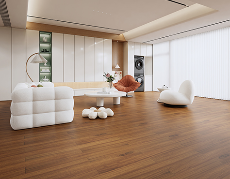 保留了木材的天然色澤,給人一種溫馨、柔和的感覺,這種顏色既不像深色地板那樣顯得沉重壓抑,也不像白色地板那樣容易顯臟,而是處于一種較為適中的狀態(tài),能夠很好地適應(yīng)各種裝修風(fēng)格和空間氛圍,為室內(nèi)增添一份自然、舒適的氣息。