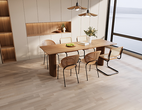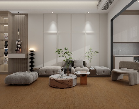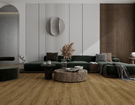 具有很強的視覺吸引力,金色部分能夠為室內空間增添奢華的氛圍,增添了沉穩、厚重的感覺,褐色色調有深有淺,較深的褐色可以營造出深邃、古樸的氛圍,而較淺的褐色則更偏向于溫馨、自然,褐色與金色相互搭配,形成了一種既富有活力又不失穩重的色彩組合,豐富了地板的視覺層次感。