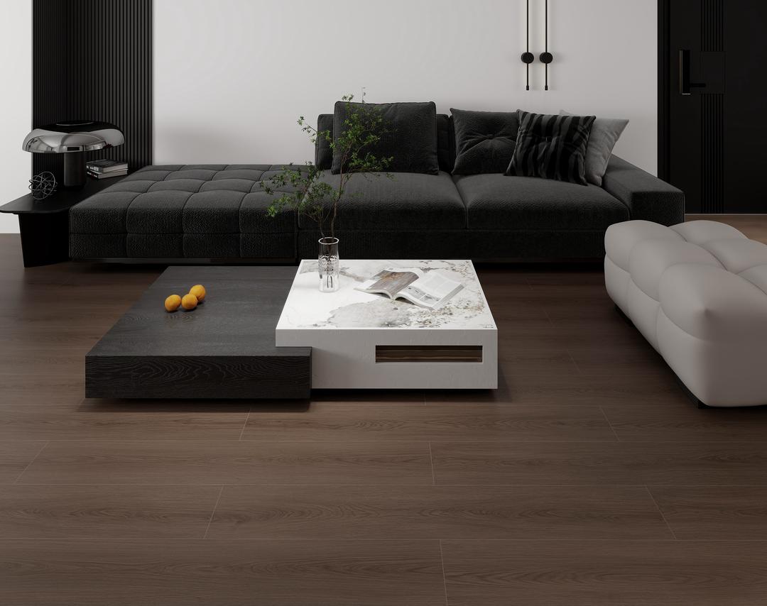如陳年紅酒般的深褐色地板,自帶復古與奢華的厚重底蘊。其沉穩(wěn)色調與黃銅燈具、皮質沙發(fā)相得益彰,輔以暗紅色絨毯的碰撞,既能承載古典風格的儀式感,又能通過光影層次打造出戲劇化的空間張力,滿足對深度美學有執(zhí)念的品味者