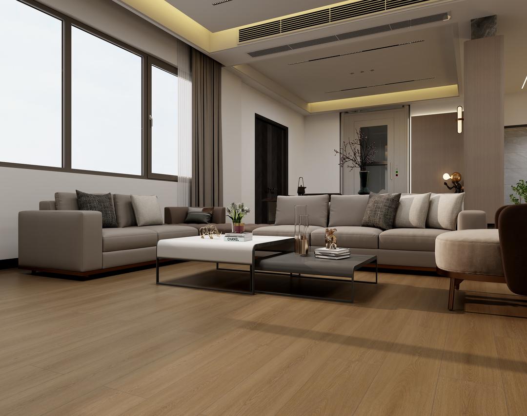 淺咖色地板,以糖霜輕覆烘焙中的杏仁表皮為靈感,在空間界面暈染出物質(zhì)轉(zhuǎn)化的臨界美學(xué)。其表面肌理呈現(xiàn)沙漠巖層與拿鐵拉花交織的拓?fù)浣Y(jié)構(gòu)——3D打印技術(shù)復(fù)刻的微孔質(zhì)感承載著手工刮刀的原始觸痕,在0.5毫米的漸變層中完成從粗陶的拙樸到絲絨的奢華的量子躍遷。當(dāng)日出時(shí)的玫瑰金光線穿透智能調(diào)光玻璃,色溫會(huì)沿分子涂層析出茶湯般的琥珀光譜,使鈦金屬支架與藤編柜體這對視覺矛盾體,在色彩的中介下達(dá)成材料學(xué)的詩意和解。這種色調(diào)如同經(jīng)過時(shí)間陳化的美學(xué)緩沖劑,既消化了現(xiàn)代主義的銳利折線,又為侘寂風(fēng)留白的虛無注入了可觸摸的生命體溫。